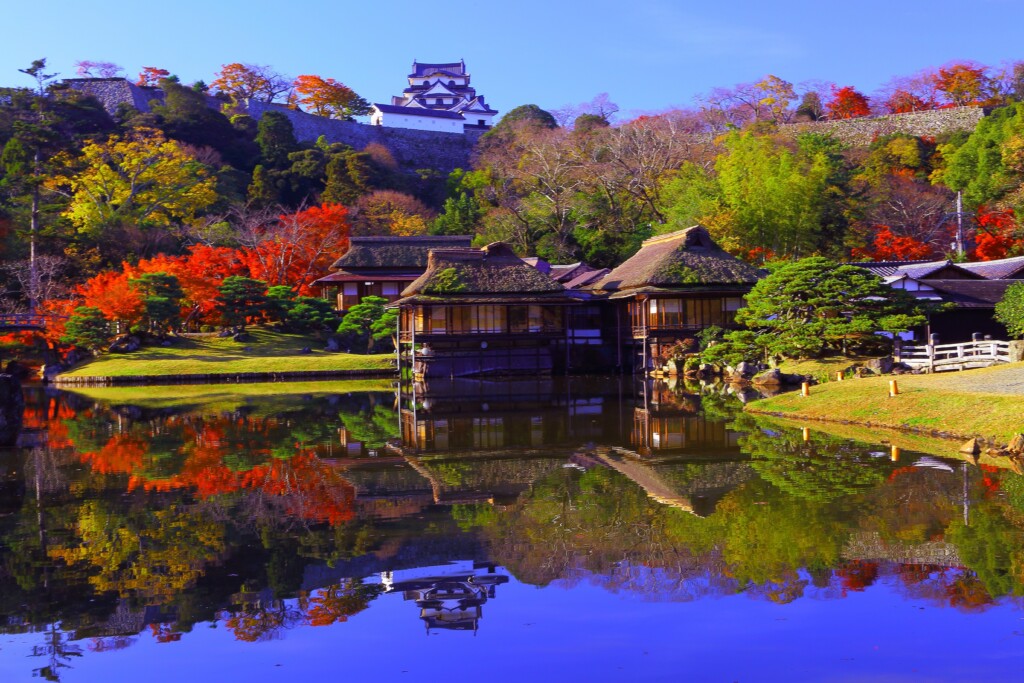 玄宮園是日本國家指定特別史蹟彥根城的一部份,也是滋賀縣彥根市的大名庭園,在玄宮園裡可以一邊喝著抹茶,一邊欣賞三百年歷史以上的日式庭園和國寶彥根城的倒影,是去完彥根城之後,必然會接著前往的彥根必訪景點。