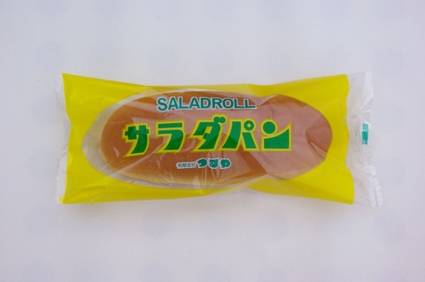 沙拉麵包是滋賀縣長濱市的鶴屋麵包,從1951年創業時所推出的經典麵包,黃綠色包裝,麵包裡面包了黃澄澄的美乃滋與切碎的漬蘿蔔,味道香甜圓潤滑順,讓人一口接一口停不下來,是非常特別又極具懷舊的簡單風味,持續深受當地居民喜愛。