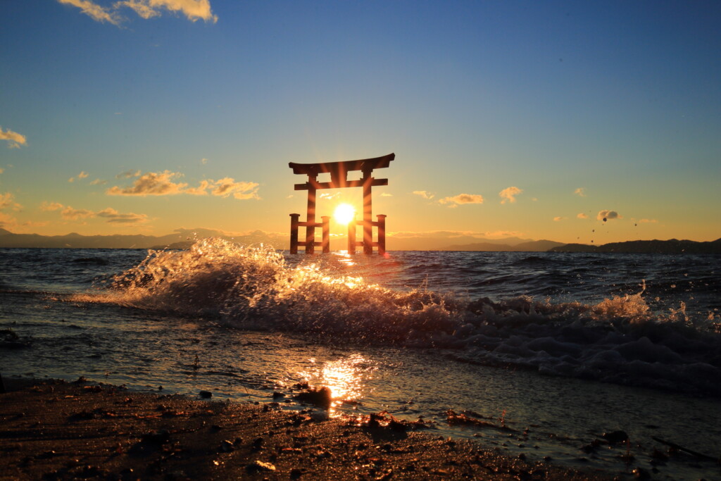 白鬚神社建造於約1900年前,位在滋賀縣琵琶湖畔,擁有近江最古老的歷史,湖中的鳥居舉世聞名,清晨太陽從鳥居之間升起,夜晚也有燈光投射,是喜好攝影同好們的推薦景點,被列為日本遺產之一。白鬚神社距離京都交通方便,建議可以當天來回