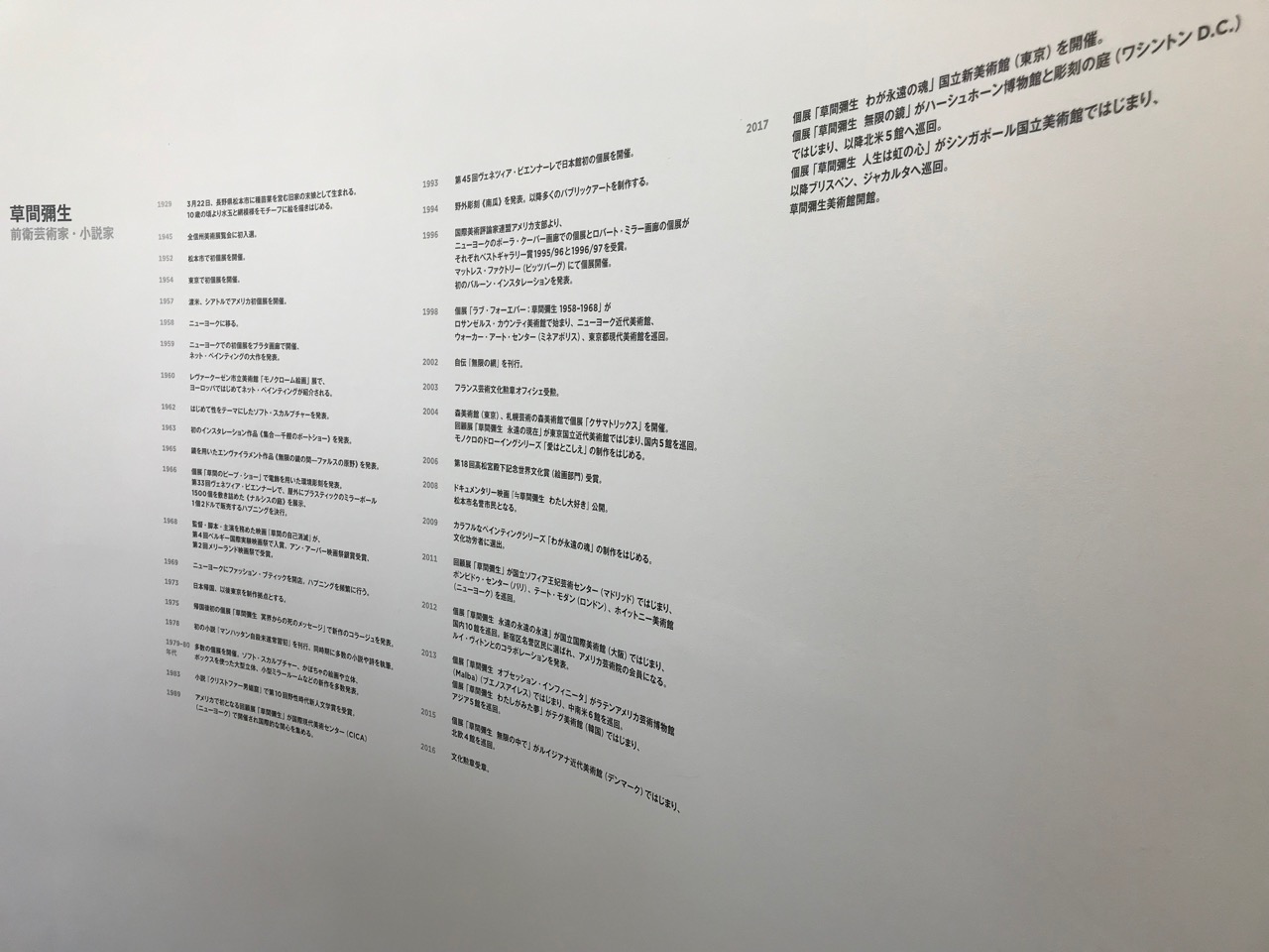 到了五樓,會先經過草間彌生的年表簡介,以及一旁書架上陳列著相關著作。