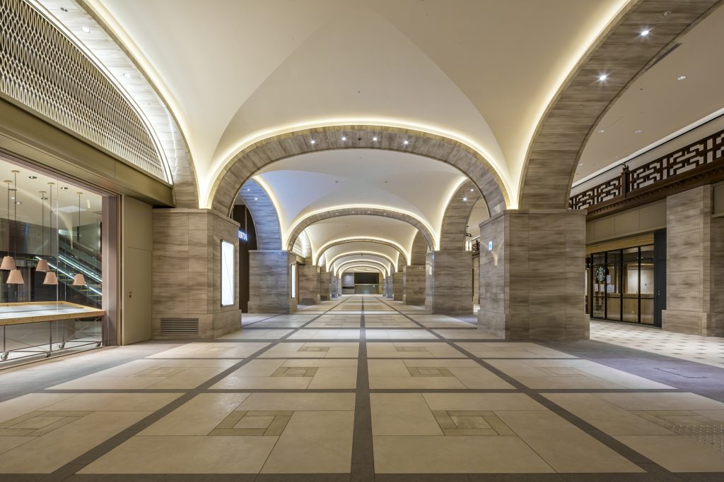 在建築設計方面,壁面採用Art Deco等樣式,為了呼應保存運動的趨勢,特別在新建築中使用了原有的舊三信大樓一部分設計。此外,大樓上半部外觀的曲線設計概念,也呼應了1883年至1940年在日比谷最重要的地標「鹿鳴館」的建築設計,處處可見古今呼應的用心。商業跟藝術並非對立,可以融合出新鮮的玩意兒。