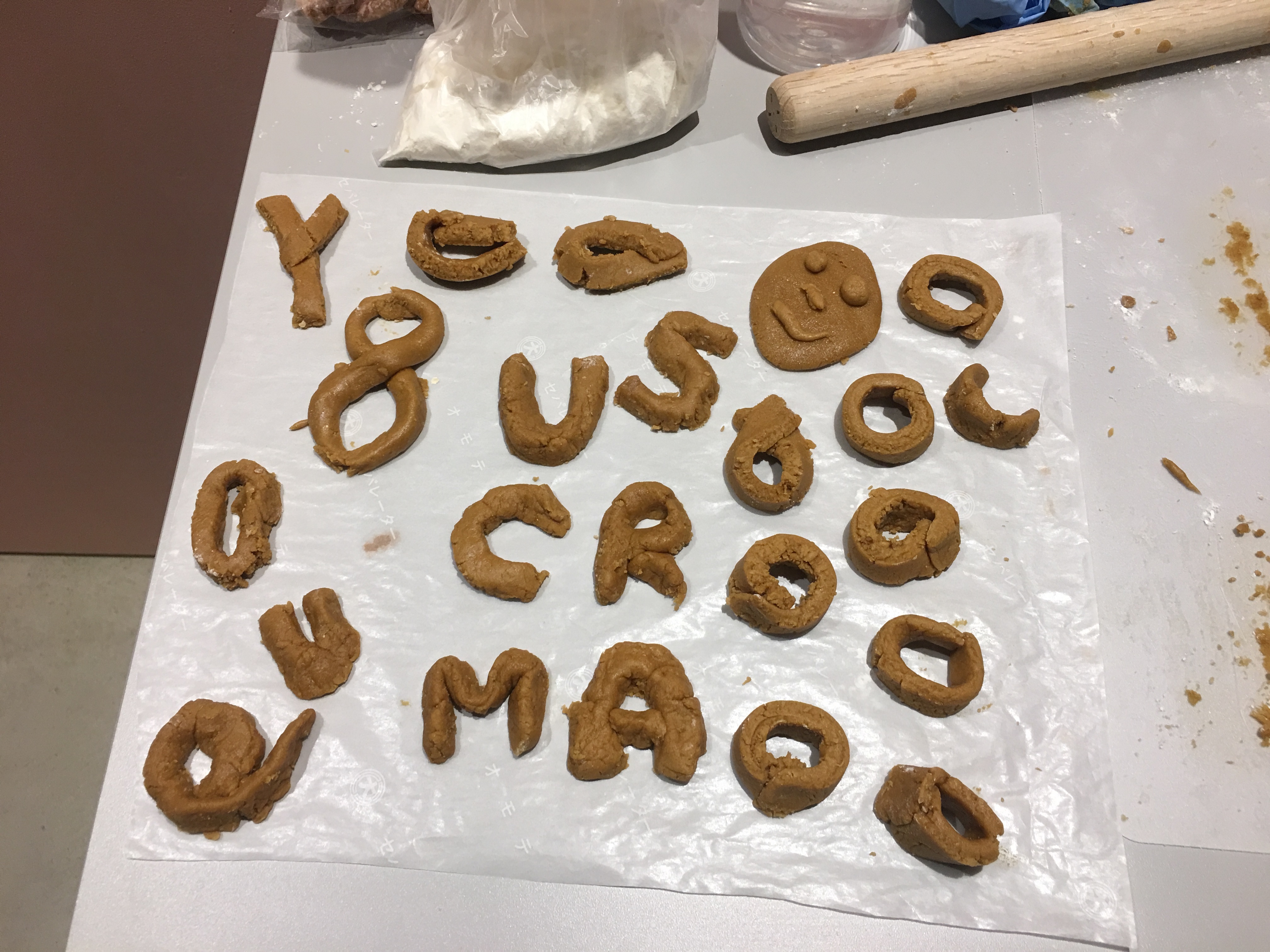 於是大家真的開始自由發揮,除了圓餅乾,我另外還做了蝴蝶結與愛心,隔壁的朋友則開始創作英文字母以及似顏繪(?)。但真的蠻像他的。