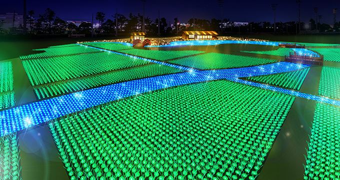 採用各種最新技術與構想,兼具高度藝術性、設計性的燈光表演,「三重縣名花之里燈飾」已經連續兩年獲得最佳專業呈現獎第一名。2018年主題為「JAPAN~日本的情景」,以講究的傳統燈泡以及LED燈呈現日本絕景。高35公尺、寬約155公尺的巨大燈飾,展現以富士山、日本各地歷史名勝、甚至浮世繪為主題的壯麗燈景。