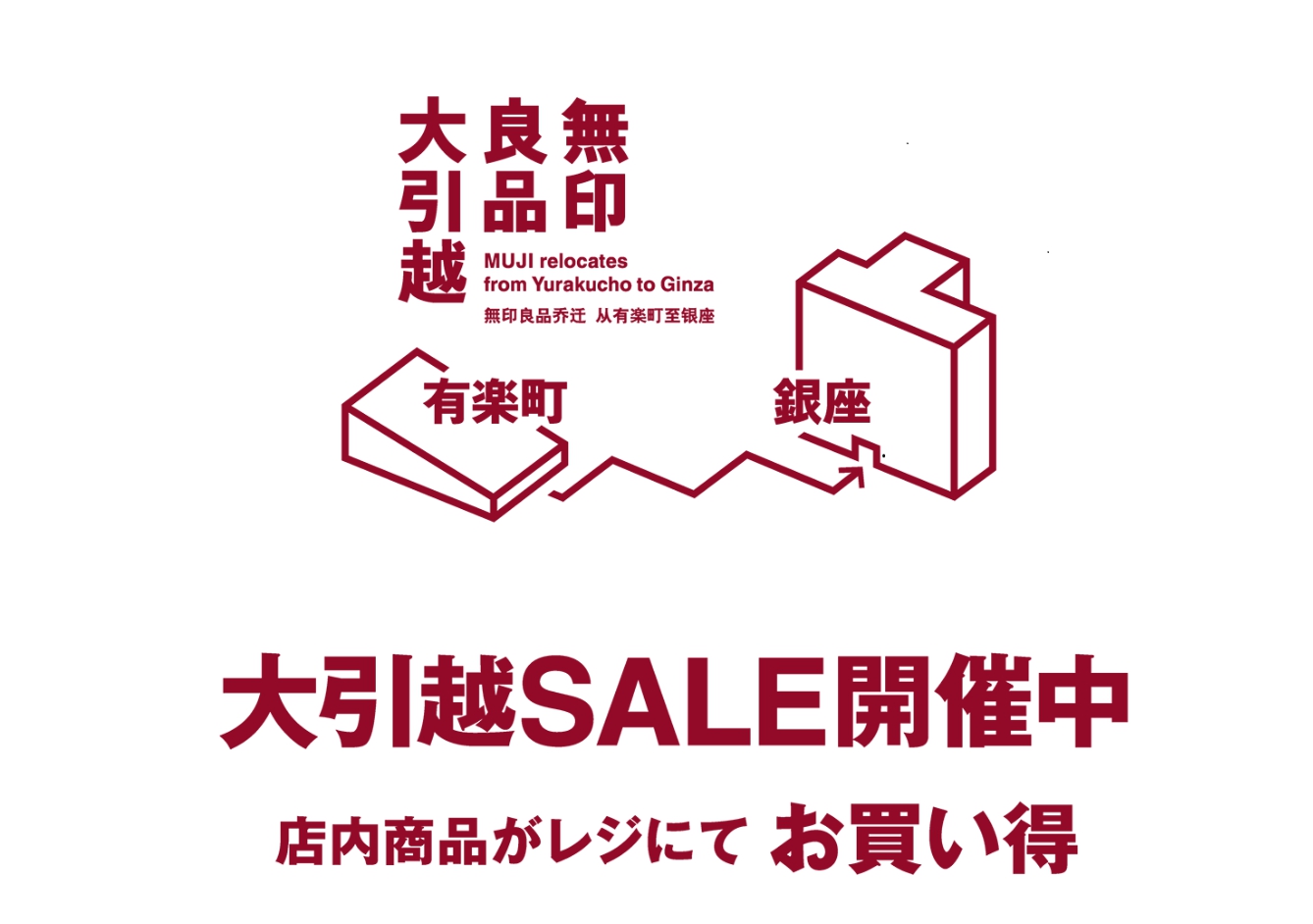 隨著有樂町店閉店轉移的日子逼近,有樂町店於2018年11月16日起開始推出「大引越SALE」。結帳時,服飾及生活雜貨等都能再打八折。