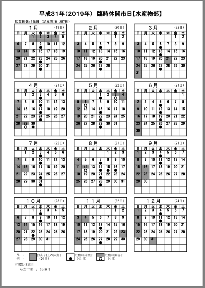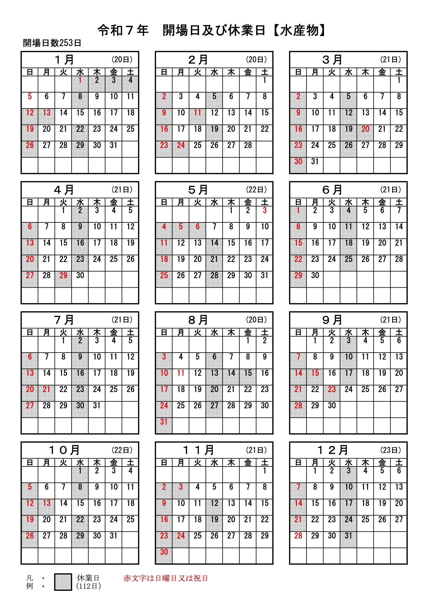 豐洲市場2025年(令和7年)營業日、公休日一覽表,要去豐洲大啖海鮮以前,先確認一下當天是不是休息,以免撲空囉~