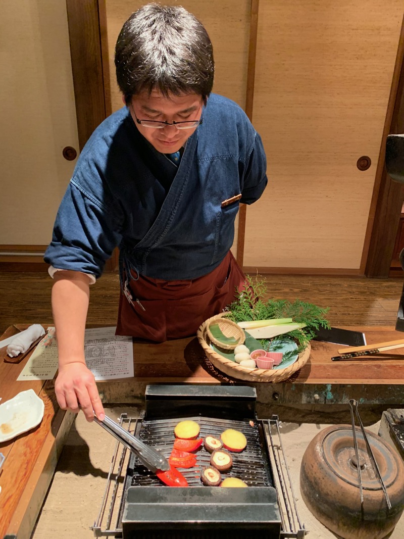 入夜後的晚餐,同樣也是以桌邊圍爐的概念,發想出整套的桌邊料理。在獨棟的老屋「小林家」或「濱田邸」內享用美味的群馬鄉土菜,根據四季更迭,菜色隨之改變,目的是務必讓旅客吃到最新鮮的當令食材。