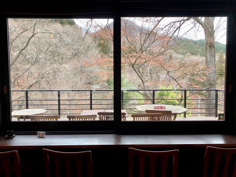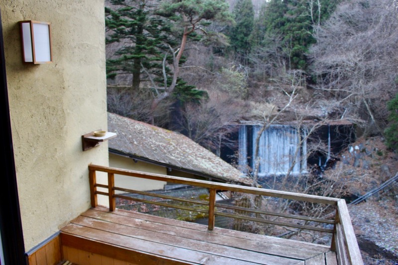 YASURAGI館的客房乃木造建築,多少會聽到屋外風聲,但夜宿於此,倒是能更徹底體驗到居住於深山的親近自然感。而這次我所留宿的則是另一棟SESERAGI館的客房。這幢新館共有十九個客房,有別於YASURAGI館的房間面對森林,SESERAGI館的客房推開窗,能奢侈地一覽群山、溪谷與瀑布,甚至還有小陽台可以站出去眺望。