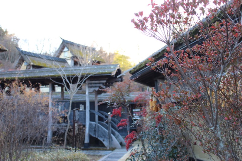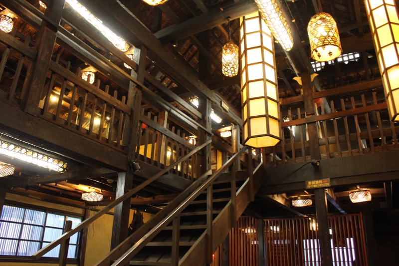 別人的旅館頂多只是費心在建築上,但旅籠不僅花心思在建築,甚至還打造出了一個山林小鎮。在這個佔地約七千坪的溫泉鄉,散落著有許多傳統的古民家建築,它們來自日本各地,經過保存工事遷徙而來。散步在其中,每個角度,都像是穿越時光隧道踏進大河劇場景。