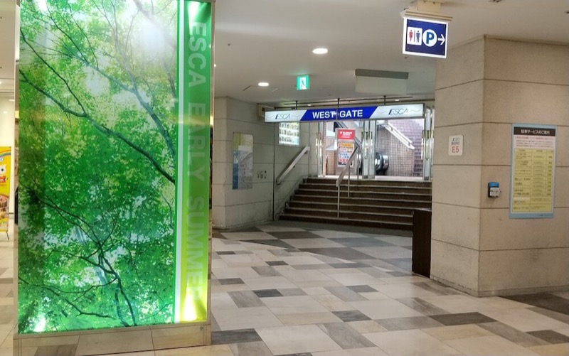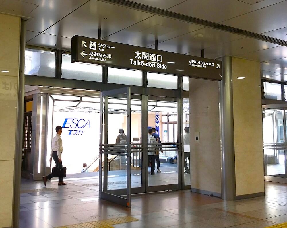從名古屋站的新幹線出口出來以後,是車站大廳,請找往「太閣通口」路標出去,立刻就是通往ESCA的入口。