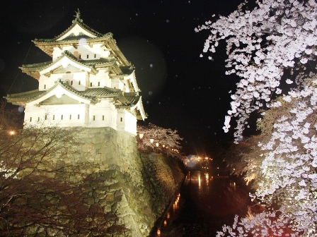 弘前城,位於弘前市的弘前公園內,1603年由實現津輕統一的津輕為信所規劃,接著在1610年由二代目信枚開始建造,1616年竣工。此後,在260年的歲月中,弘前城一直作為津輕藩的政治中心,直到津輕藩政廢除為止。
