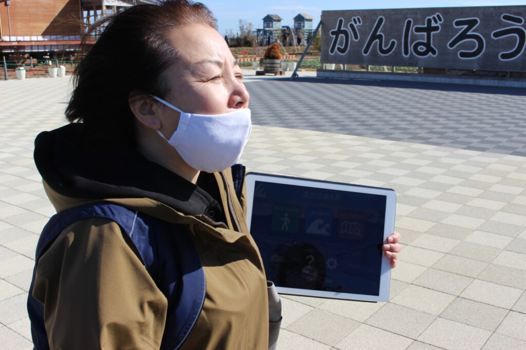 在這趟東北「3.11傳承之路」的旅程中,我分別在宮城縣和岩手縣內的不同區域,參加了幾回當地人擔任志工的口述傳承活動。例如在宮城縣石卷市的「3.11未來支援」工作人員,領著我沿途走訪過去海嘯侵襲,而如今正一一重建的街道。只要下載「石卷海嘯傳承AR APP」就能從手機螢幕中,看見此刻站立的據點,在震災前原來是什麼模樣。