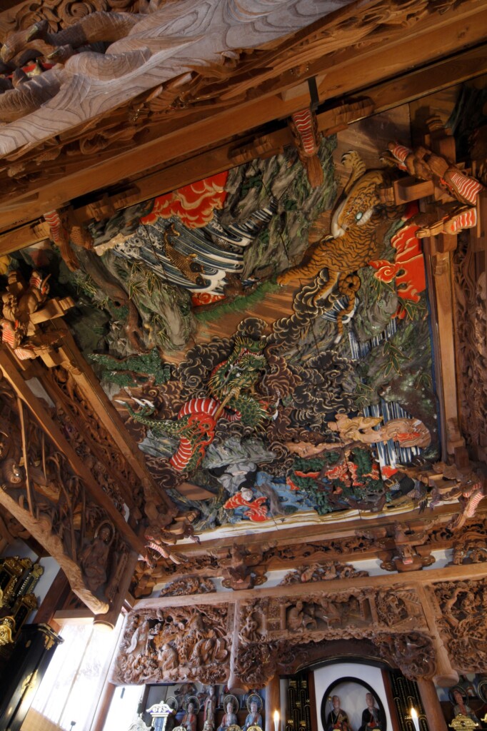 赤山西福寺始建於1534年室町時代後期。寺廟的主要必看人氣景點,是正殿內外的「石川雲蝶」的雕塑、繪畫和漆喰工藝。這些是由有「日本米開朗基羅」美譽的石川雲蝶所製作的作品,是德川幕府最期的大師,已被指定為新潟縣的文化財產。 除了巨大的雕塑之外,正殿走廊的地板上還鋪著許多木質填充物,顯示大師的俏皮。