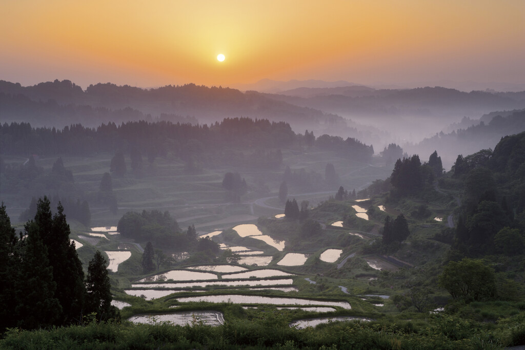 在新潟縣十日町市的梯田中,最受歡迎的是 「星峠梯田」(星の峠棚田)。200塊大小不一的水田像魚鱗一樣分布在山坡上,在不同的季節和時間,像是早晨、中午和晚上,都會呈現出不同的面貌。若遇上最佳的時節,當雲海和水鏡閃耀時,總吸引許多來自各地的攝影師和遊客,來這裡觀賞美麗的風景。