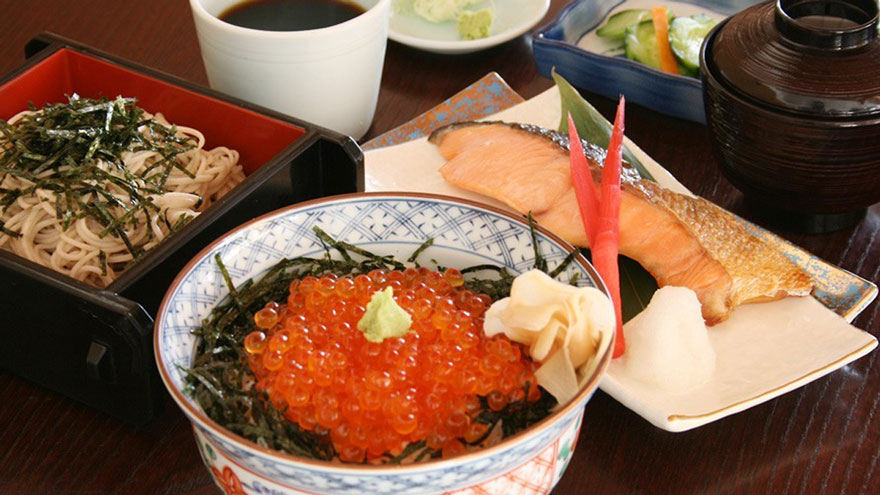 在新潟縣村上市,長期以來鮭魚一直是當地的特產。在那裡有一道美食叫做「鮭魚卵蓋飯」(はらこ丼),簡單來說就是鋪滿新鮮鮭魚卵的蓋飯,長年是在地人的國民美食,同時也吸引遠道而來的遊客熱愛。在村上市有許多地方都能品嘗到這道美食,特別推薦旅人常選擇的「悠流里」餐廳。