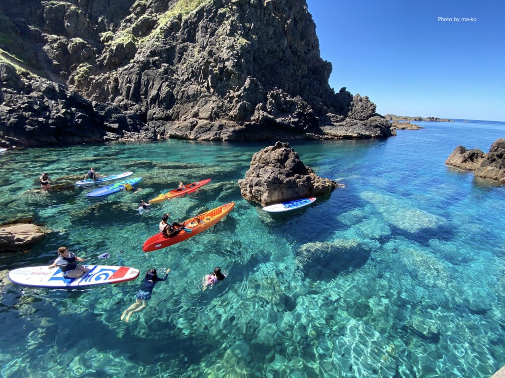 這是站在稍大的衝浪板上,手滑船槳在水面前進的活動,因為在風浪影響小的灣內進行此活動,初學者只要稍微練習就可以立刻上手。為了安全起見得穿上救上衣,就能充分享受離島的湛藍海洋。