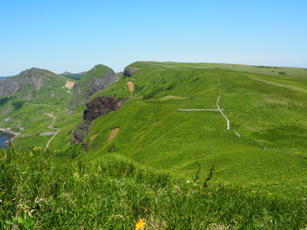 禮文島又別名「花之浮島」。因為緯度高,所以其他地區得要2,000公尺以上才能見到的稀少高山植物,在禮文島的平地上就能輕鬆看到。高山植物欣賞期為6月到8月,為禮文島觀光的最佳季節。島內有七條步道,其中最受到歡迎的行程,是探訪島前方圓尖形貌似桃子的「桃岩」之「桃岩展望台行程」。這行程可以看到禮文小櫻、禮文薄雪草、禮文金梅草為首的島內各種高山植物,因而廣受歡迎。此外,禮文島因為是離島,所以沒有棕熊、蛇棲息,可以安心的健行。