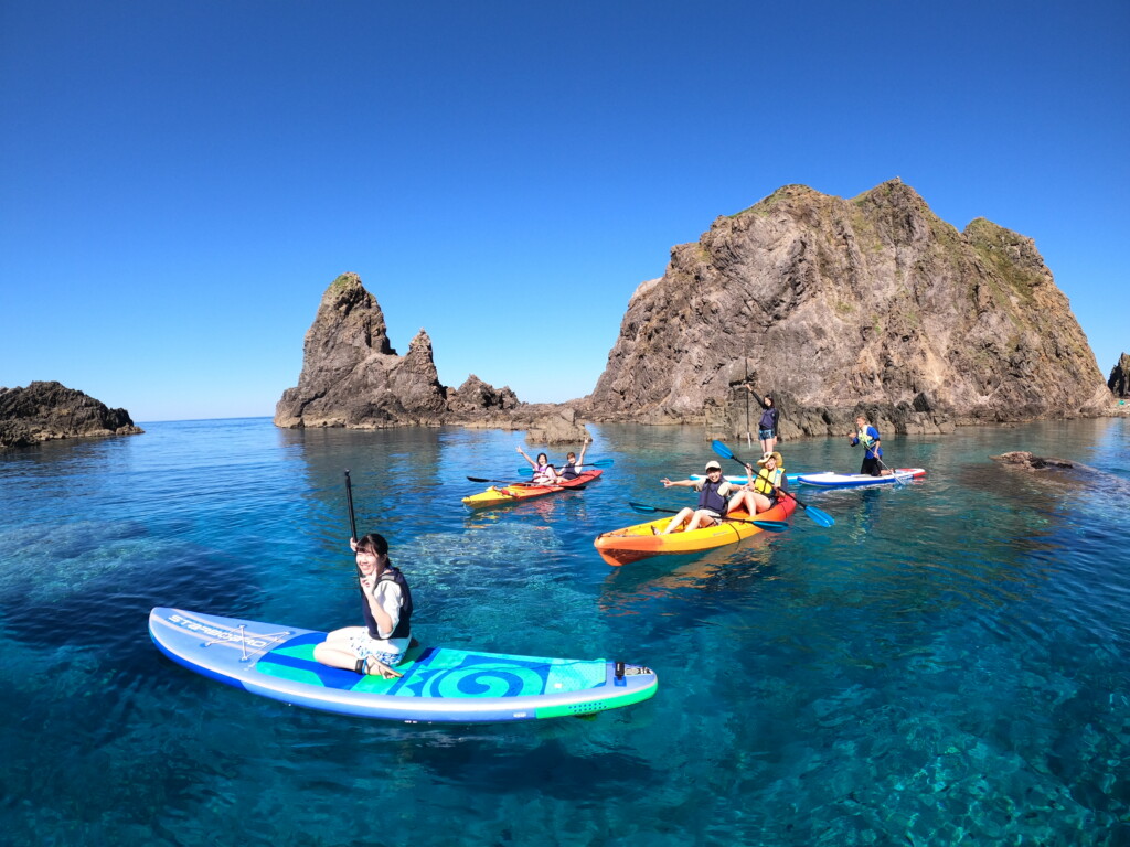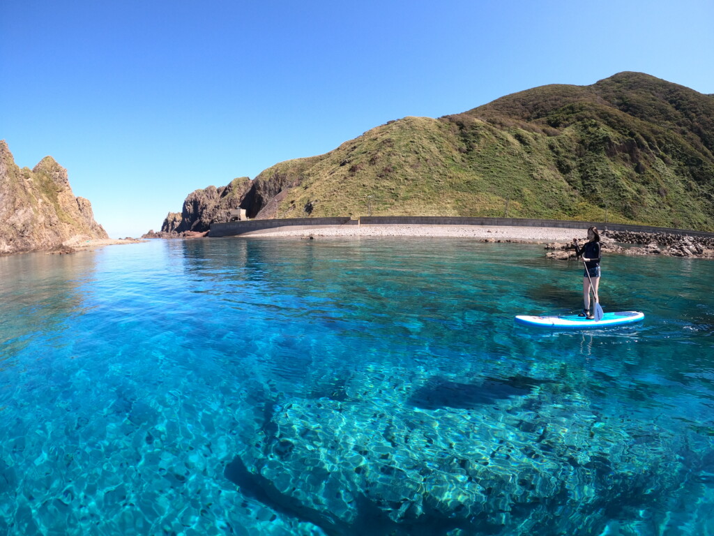 位於北海道西南部、周圍約84公里的奥尻島。擁有透明度達水深25公尺而自豪的海洋,夏天除了可以享受海水浴外,春天或秋天有很多的釣魚客造訪此島。現在奥尻島受到歡迎的是可自在享受海岸線的獨木舟等海上活動,之中最受到矚目的就是 SUP立槳活動(Stand Up Paddleboard)。