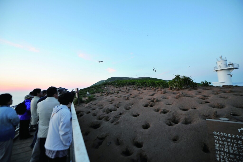 天賣島是北海道北方羽幌町的島,光角嘴海雀(善知鳥)就約有80萬隻前來,為世界最大的角嘴海雀繁殖地。在天賣島和旁邊的燒尻島,吸引為數眾多的侯鳥前來。從羽幌港搭渡輪前往這兩島的船上,就可以觀察海鳥。特別在天賣島‧燒尻島之間,能看到海鳥漂浮在海洋上的樣子,或飛翔在水面的姿態。燒尻島因有紅豆杉原生林,據說前往此島的野鳥約有200種。然後在5月到7月間的晚上,還能看到角嘴海雀歸巢的風景。以成群飛來的藍尾鴝或黄眉姬鹟為首,各種鳴叫聲音此起彼落,現身之處遍佈各處,是精彩絕倫令人盡興的賞鳥體驗。