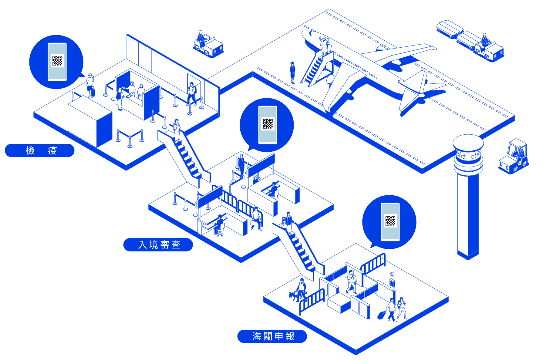 1. 1. 出發前,請先到Visit Japan Web網站辦理入境手續的「檢疫(快速通關)」、「入境審查」、「海關申報」