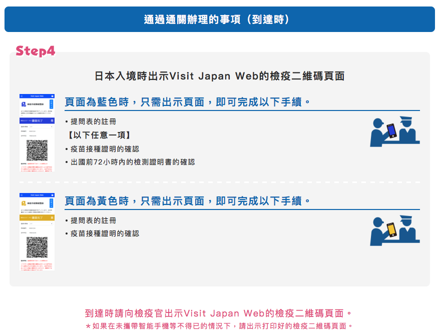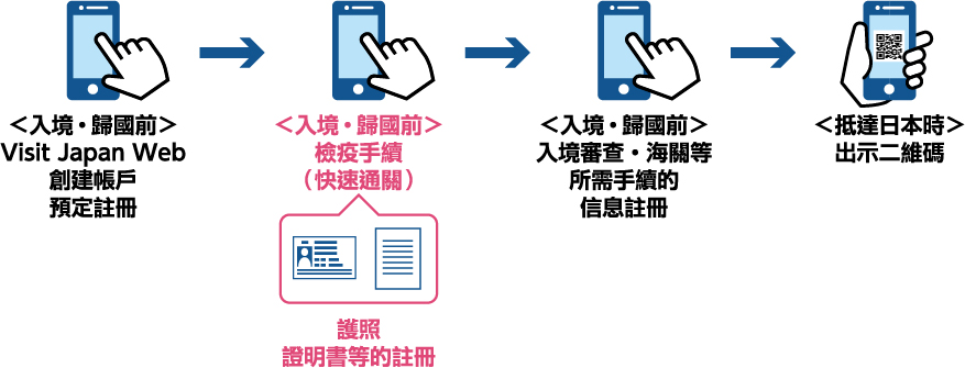 出發前2週,可事先到「Visit Japan Web」網站註冊帳號並登錄上傳審查文件,抵達日本後可走入境檢疫「快速通道」