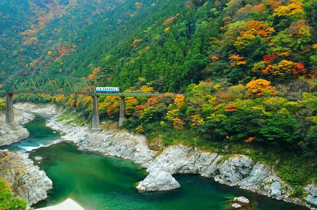 祖谷葛藤橋位於三好市西祖谷山村,被譽為是日本三大奇橋之一,由重達五噸的軟棗獼猴桃樹枝,編織成藤葛所建造而成,每三年就必須重新編織再建,橋的兩端倚托於兩岸老樹,每一步踏出去就會發出聲響,橋面也會隨之搖晃,彷彿能感受到從前的艱困生活情境。