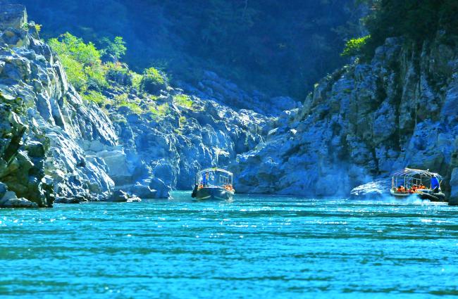 大步危和小步危的山坡極為陡峭兇險,由吉野川激流的鬼斧神工所形成,約八公里長的溪谷,這段河道地形奇特水流湍急,因而成為划獨木舟等極限水上運動的勝地。大歩危下流三公里處則為小歩危,如同大理石雕刻聳立般的景觀,被指定為國家天然紀念物。