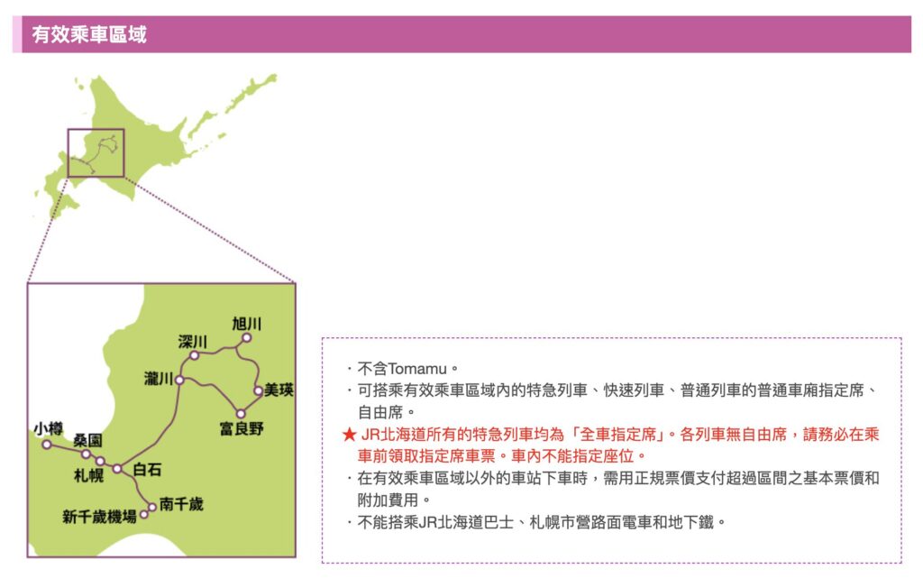 | 適用範圍 | 新千歲機場、札幌、小樽、富良野、美瑛、旭川一帶 |