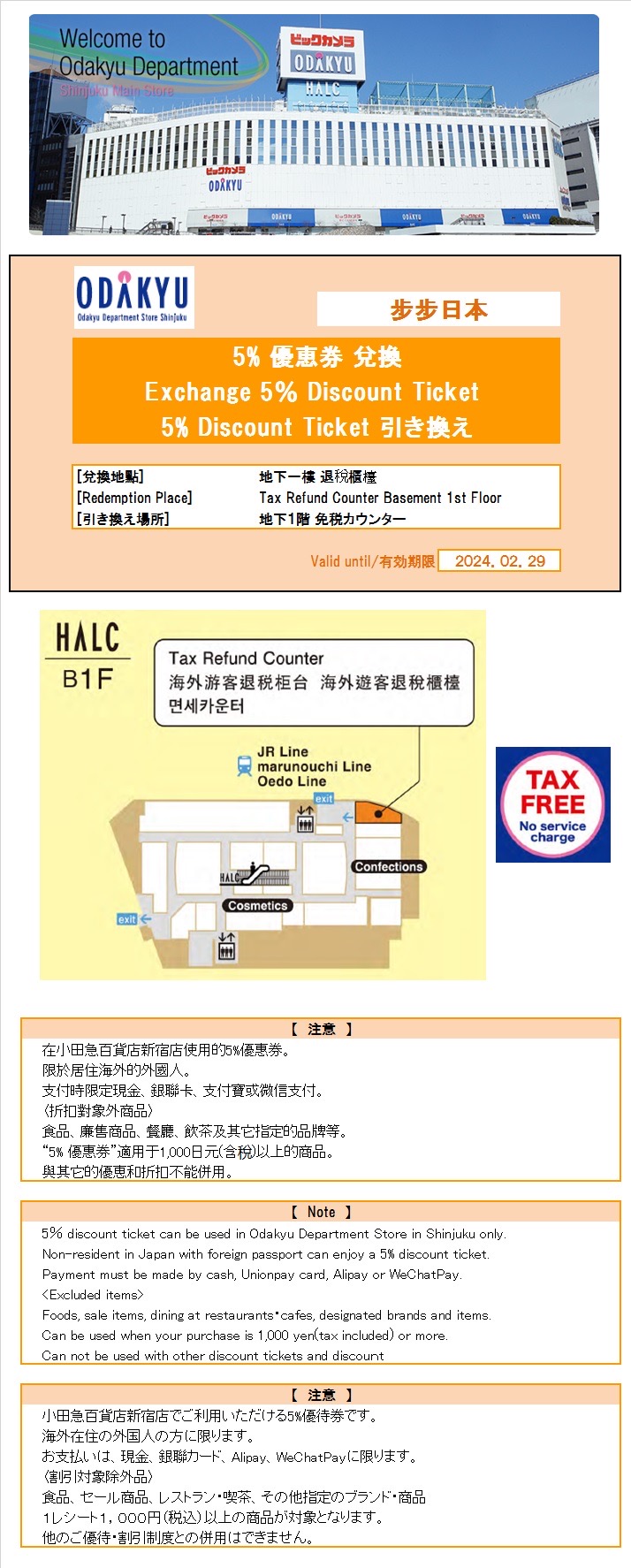 退稅地點:小田急百貨新宿店HALC地下1樓 退稅櫃台