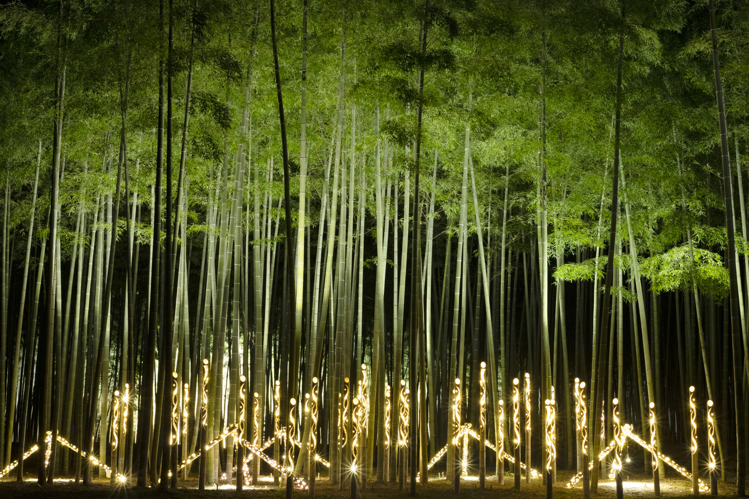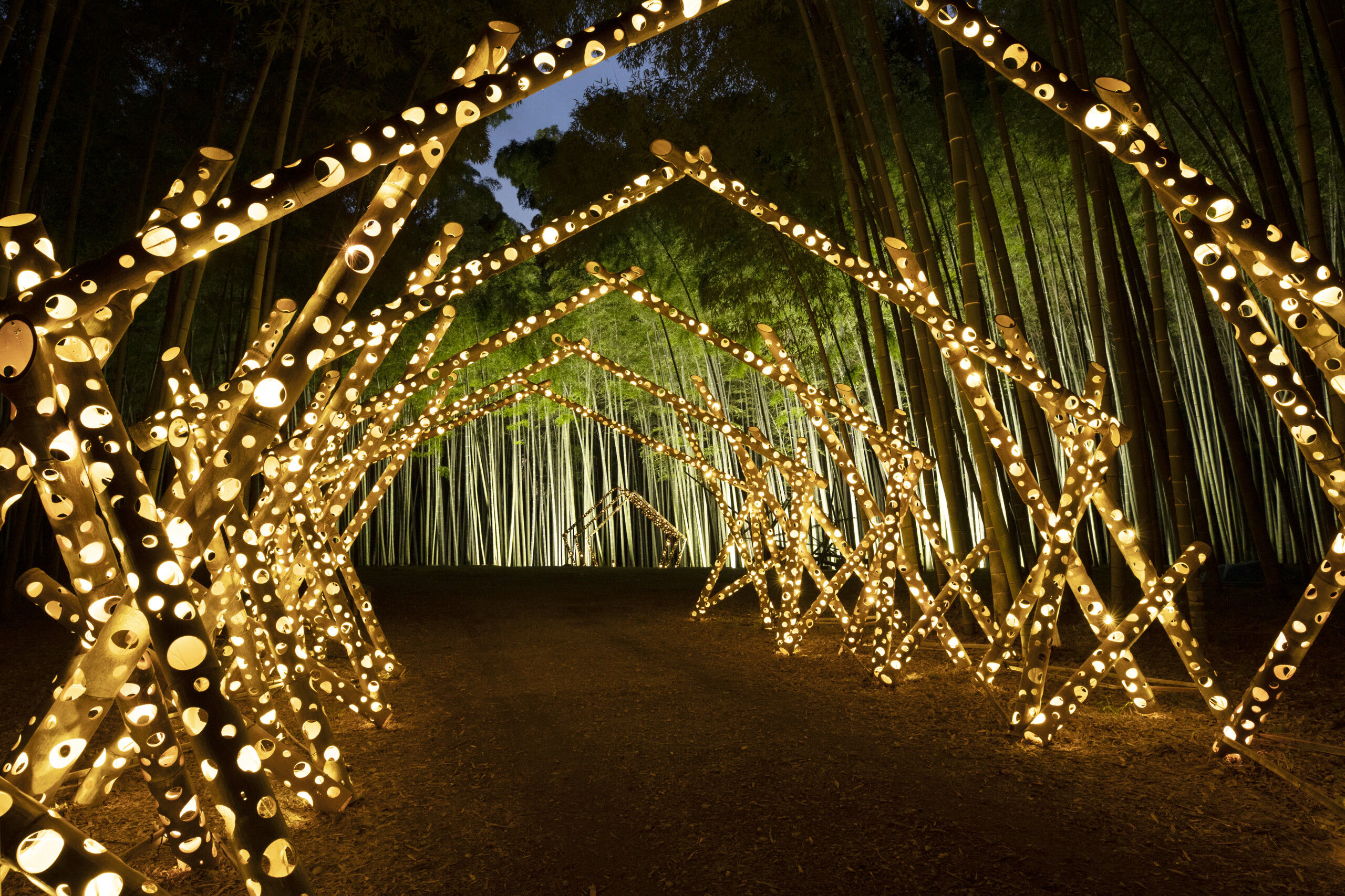 入夜後竹林會點燈,充滿奇幻的景色在眼前一路綿延開來!
