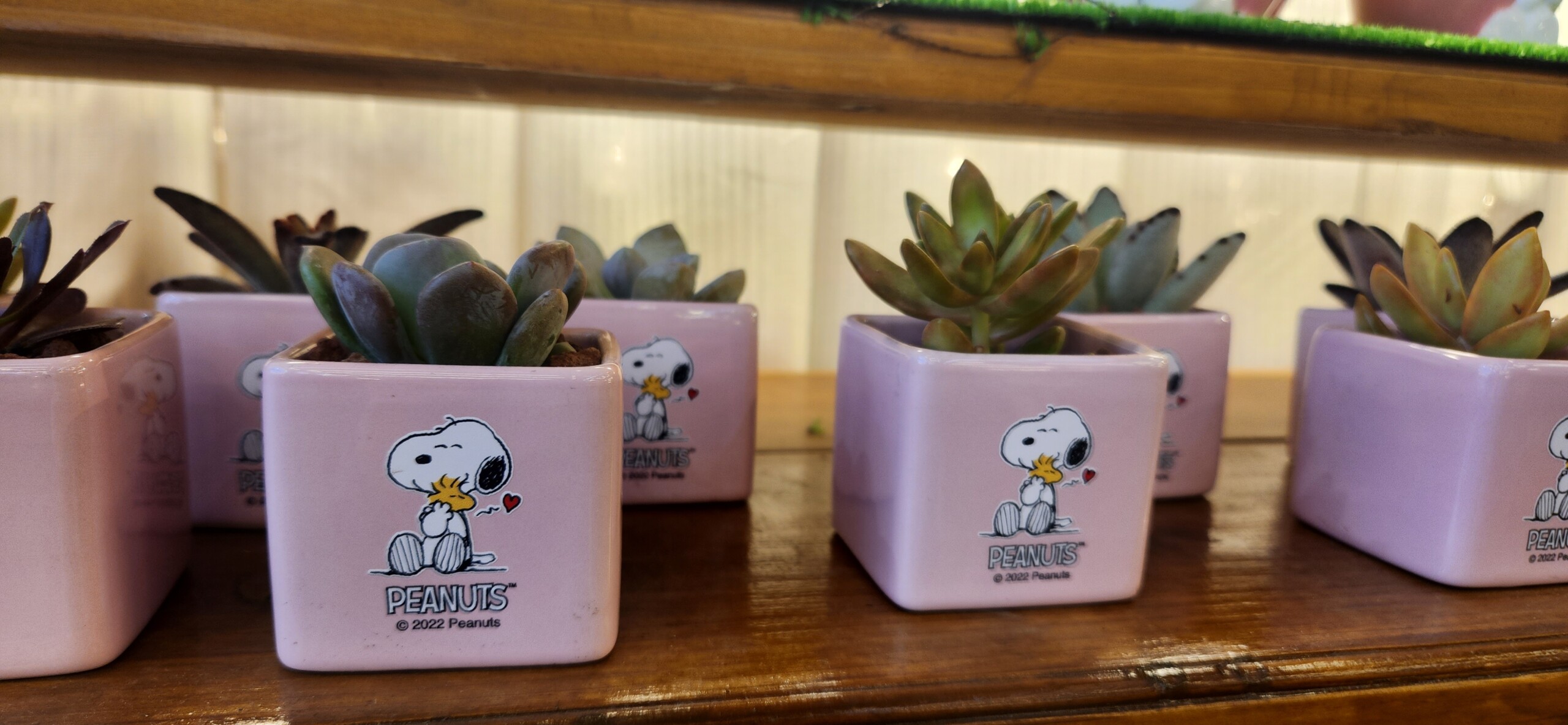紀念品當然和花卉脫不了關係,並且還有史努比聯名商品,以及極具年節氣氛的多肉植物盆栽。