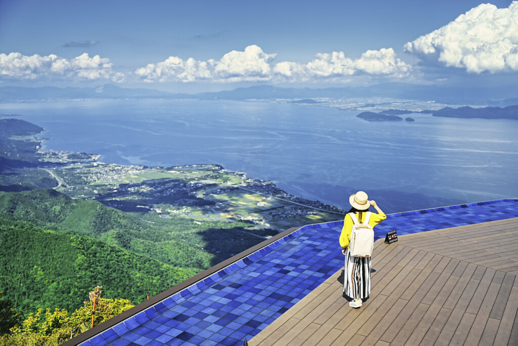前往琵琶湖山谷,建議從山麓搭乘全日本最快速,擁有壯觀的全景360°透明玻璃車廂的纜車,只要大約5分鐘的時間,即可到達高1100公尺的山頂。從琵琶湖觀景台上,一年四季都可以將日本最大的琵琶湖一覽無遺,享受悠閒將美不勝收的全景盡收眼底。