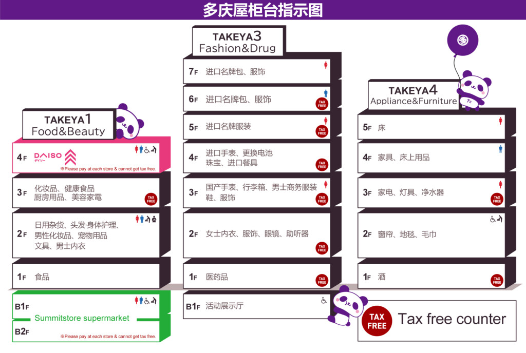 來到多慶屋,首先你需要知道你想要的產品屬於什麼類別,比如食品、化妝品、維他命、名牌包包,或電器,開始再查詢想找的產品類別,分別是放在哪一棟樓的哪一個樓層販售。