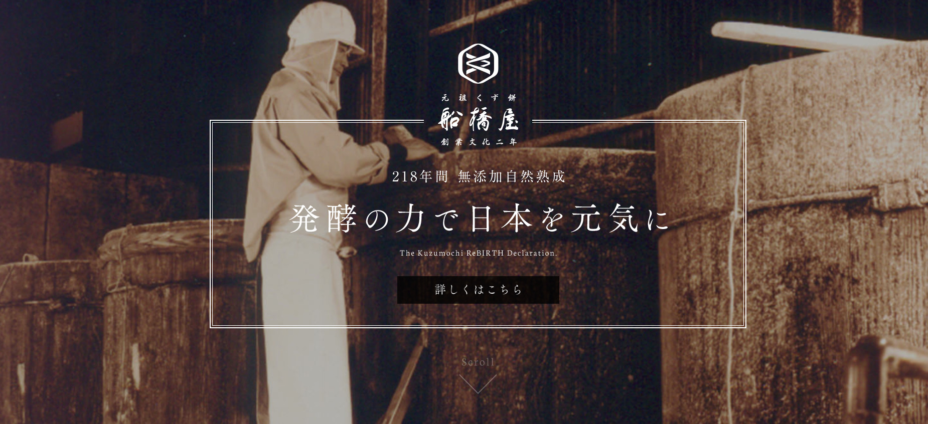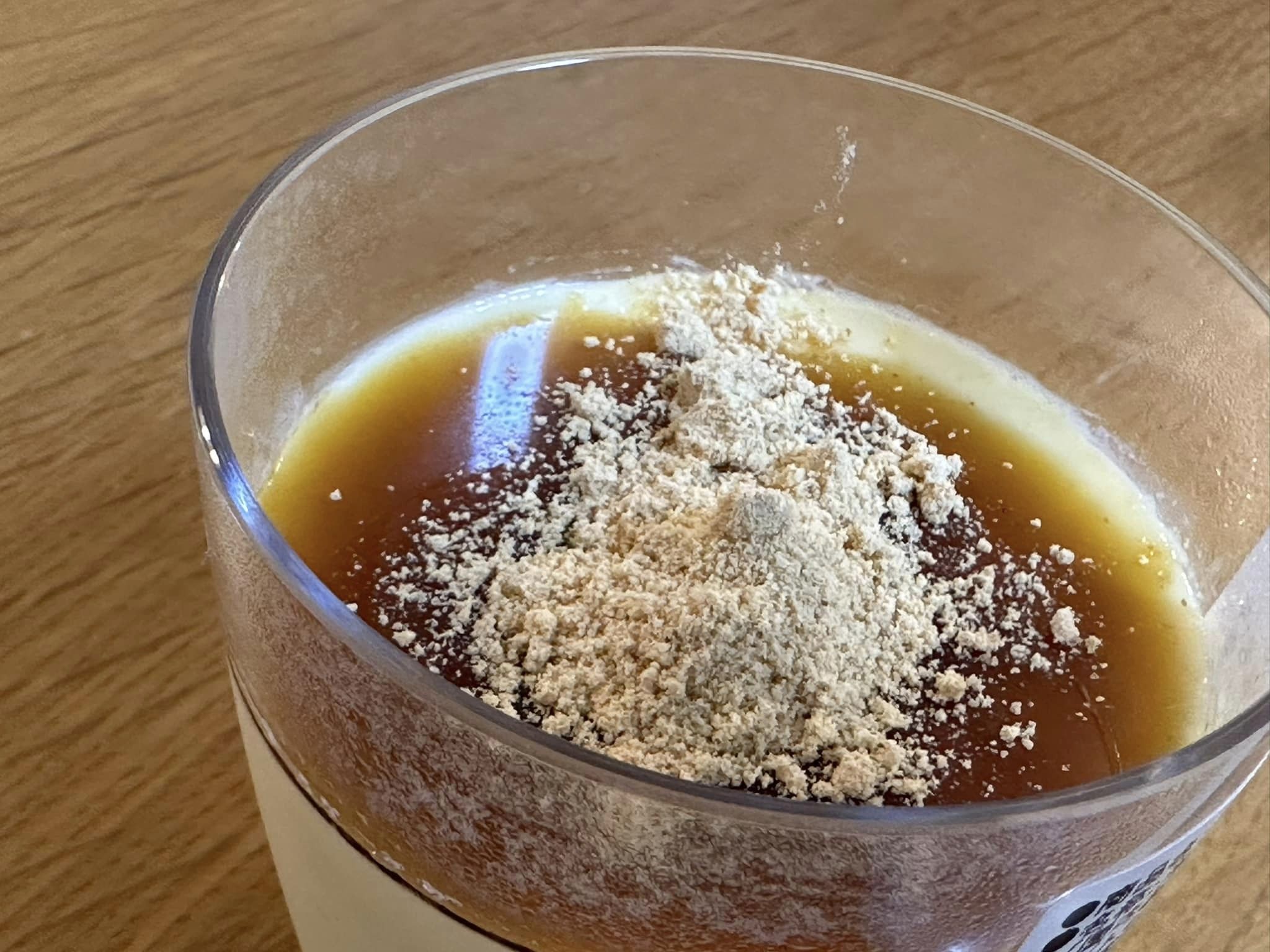 「葛餅的原材料是發酵小麥澱粉。小麥澱粉需要長達15個月的發酵和成熟時間。完成後,在布丁的製作過程中放進這種澱粉,等於是要花上450天的時間和精力才能做出葛餅布丁。最後再搭配船橋屋秘製的黑糖蜜,芬芳的黃豆粉,創造出完美交織的平衡口感。」