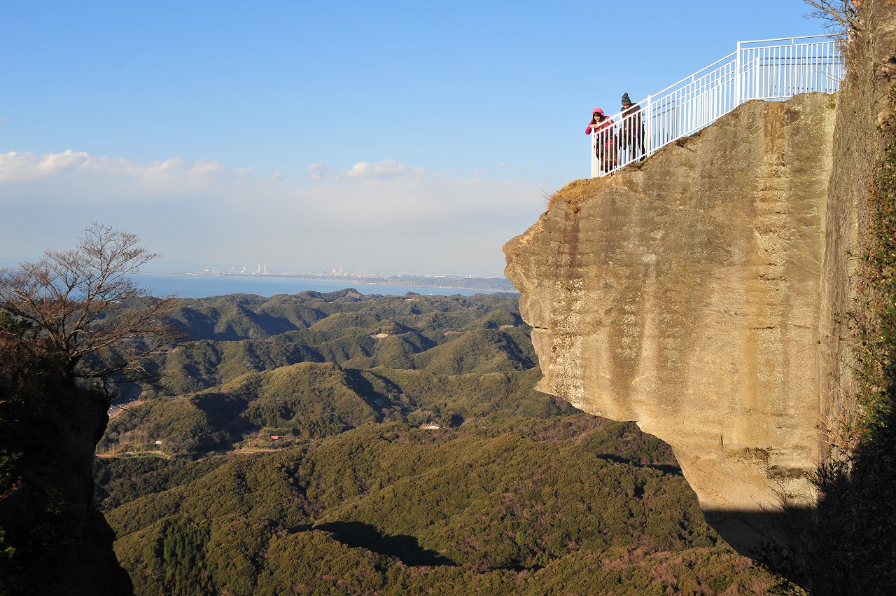鋸山是一座海拔329公尺的山峰,並以其鋸齒狀的懸崖山體而得名,也是日本百名山之一。遊客可沿著古老的登山路線而上,或是搭乘纜車直達山頂,登上懸崖峭壁上建造的鋸山地獄觀景台,可將東京灣和房總半島的壯麗美景盡收眼底,還有機會可遠眺富士山。