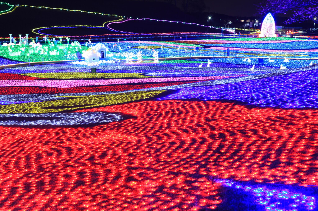 而在冬季,還有關東地區最大的聖誕燈飾。漫步在七彩璀璨的燈光下,欣賞燈光秀的表演、搭乘摩天輪從高處欣賞燈飾,彩虹隧道等等,讓人沈醉於浪漫夢幻的時光。