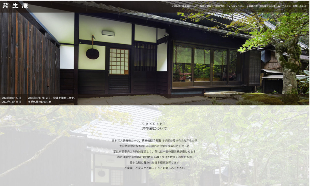 預約芹生庵可利用以下的日文、英文網站。*中文網站目前正在製作中