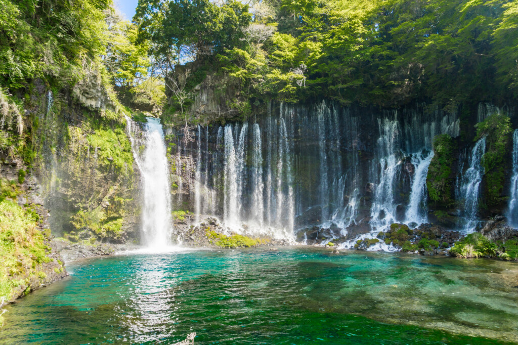 位於靜岡縣富士宮市的白絲瀑布,主要水源來自富士山的融雪,如絲緞一樣延伸 200 公尺後,從約7層樓高、 20 公尺高墜下,薄又細緻的水流如白絲一般,成為令美景愛好者不自覺久留的絕美景點,當然也成為靜岡縣著名的觀光景點,白絲瀑布也被選入日本瀑布百選。