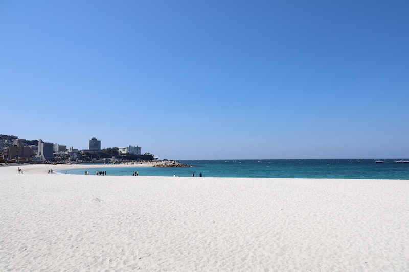 綿延640m的白色沙灘是由含有90%珪酸的石英砂所形成,碧藍的清空、清澈的大海搭配上夢幻的白色沙灘,讓白良濱被選為「日本海水浴場百選」之一,深受國內、外觀光客歡迎。
