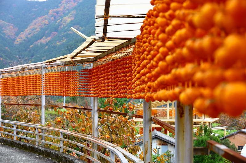 擁有長達400年歷史及傳統的四鄉地區被譽為串柿之里,是串柿的知名產地。串柿是將柿子去皮後穿在竹籤上,晾乾成為傳統的正月裝飾品。每年11月上旬至中旬,四郷地區的民宅在屋簷下或屋頂上掛滿串柿,營造出壯麗美麗的景觀。