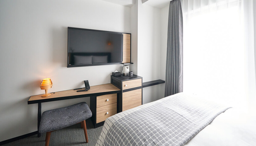 如果旅遊的期間較長,簡約優雅的上野寶石飯店將會是你的最佳選擇。房內設計明亮大方,充分利用每一吋空間收納備品,床頭也設計了置物平台及充電插座,相當便利。