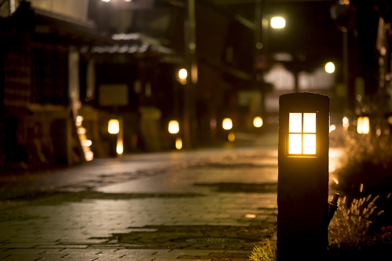 寺町通在1851年曾經有著90家寺町數量的歷史景點,有著報恩寺、妙國寺和榮久寺等著名寺院,街道鋪設了石板路,石燈籠和吊燈排列其中,充滿情調,氣氛幽雅靜謐,你可以在這裡找到充滿日本傳統風情的城下町和街道、市集。夜晚時分,從石燈籠中散發出的光芒照亮了石板路和寺廟外牆,營造出古老城市的氛圍。