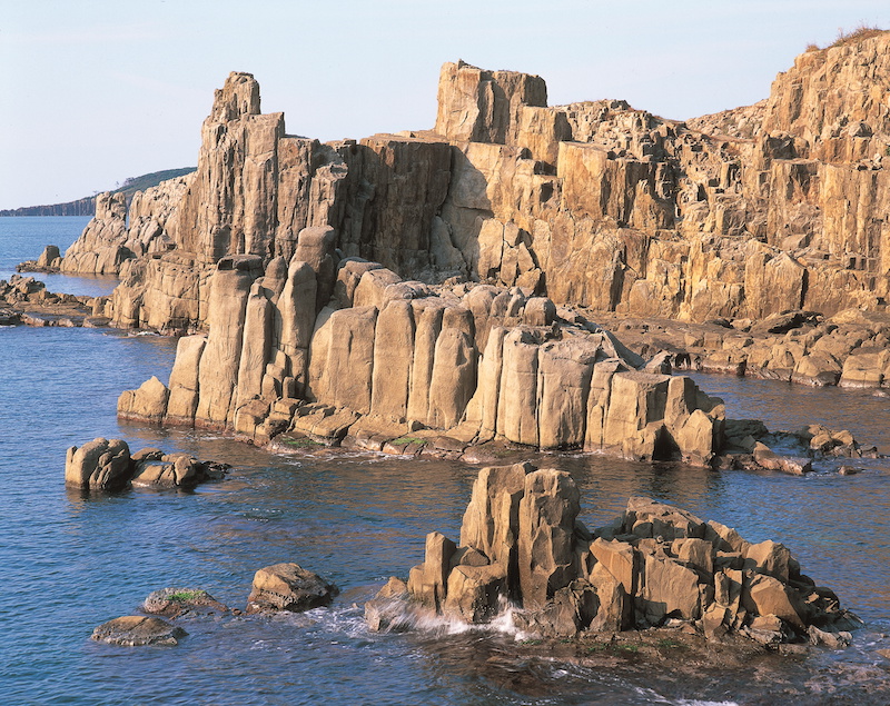 東尋坊是一個荒磊嶙峋、延綿約1公里的壯觀景點,被指定為國家名勝和天然記念物。特別是那高達20米以上的海崖,不僅壯觀而且壯麗,日本海的狂暴海浪撲打著岸壁,展現出令人驚嘆的威力。這片巨大的柱狀節理地形(根據最近的研究調查)在世界上非常罕見,與朝鮮半島的金剛山和挪威西海岸的斯堪地那維亞並列,是地質上非常珍貴的地方。