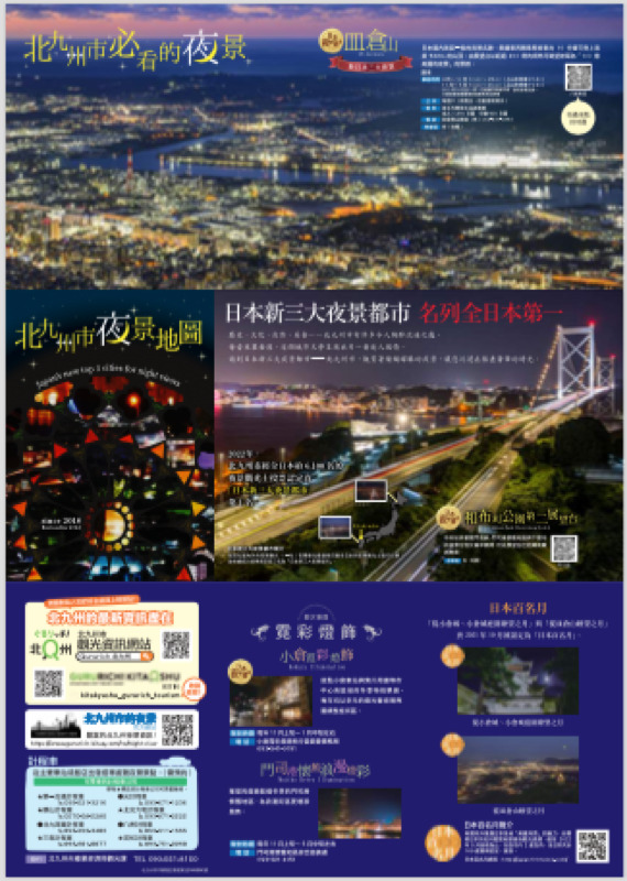 這份完整的觀光指南手冊,遠超過單張地圖的簡單介紹,深入介紹北九州市的各大景點和活動,幫助你全面了解這座城市的魅力。不僅如此,手冊中也包含專門的夜景導覽,讓你可以輕鬆找到最佳的夜景觀賞地點。無論是歷史名勝、自然景觀,還是浪漫的夜景,這本手冊將成為你探索北九州的最佳夥伴,帶領你發現這座城市的每一個美麗角落。