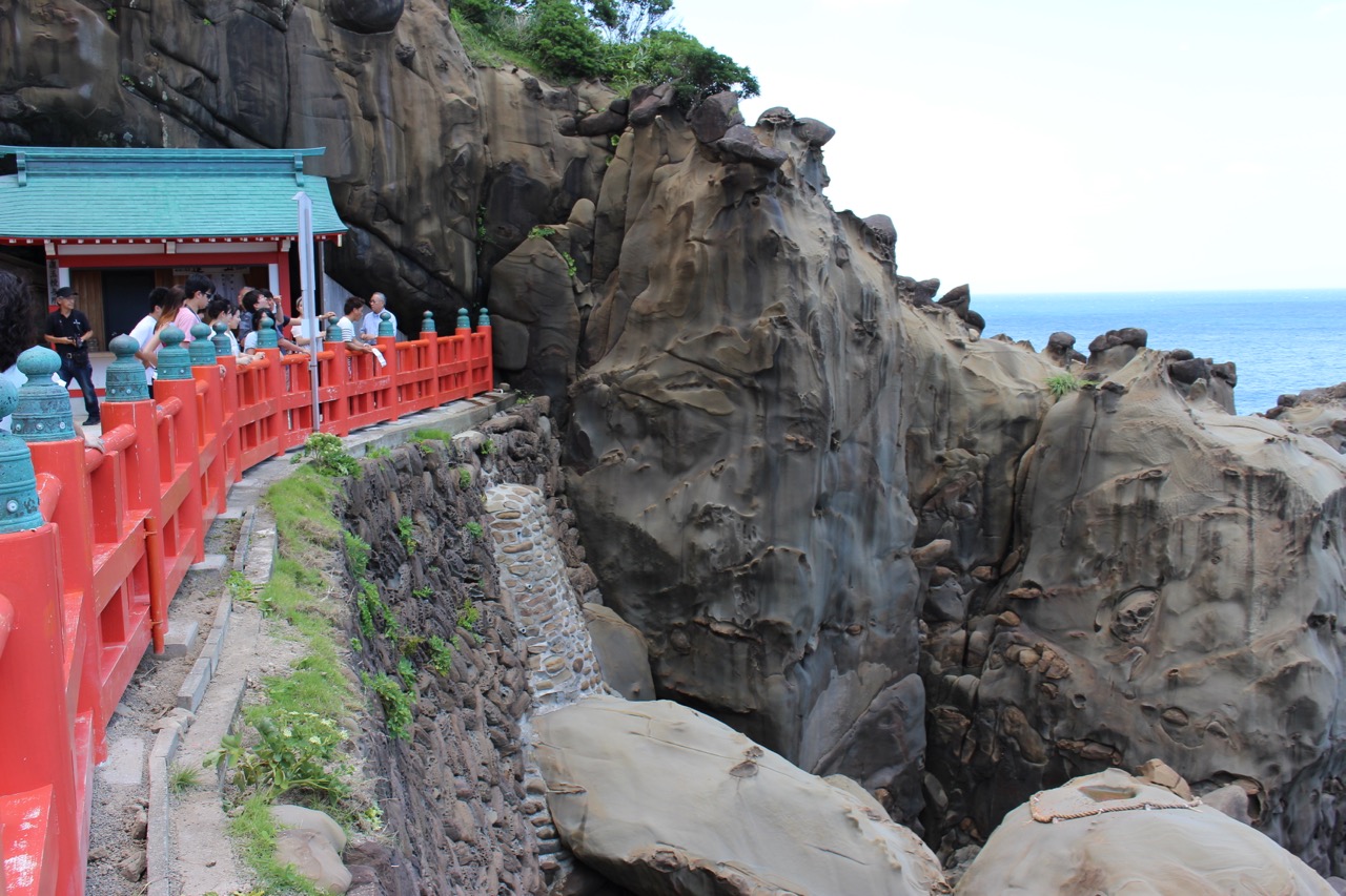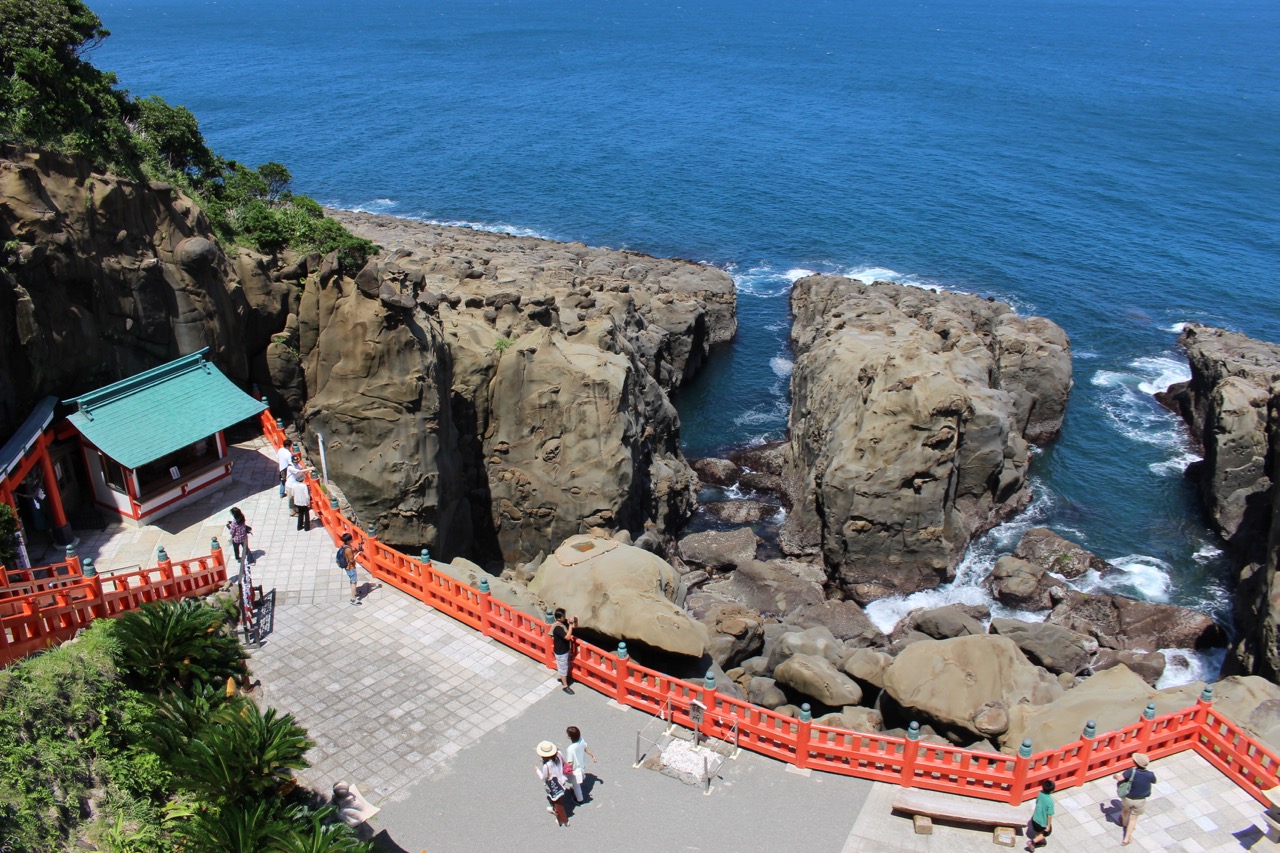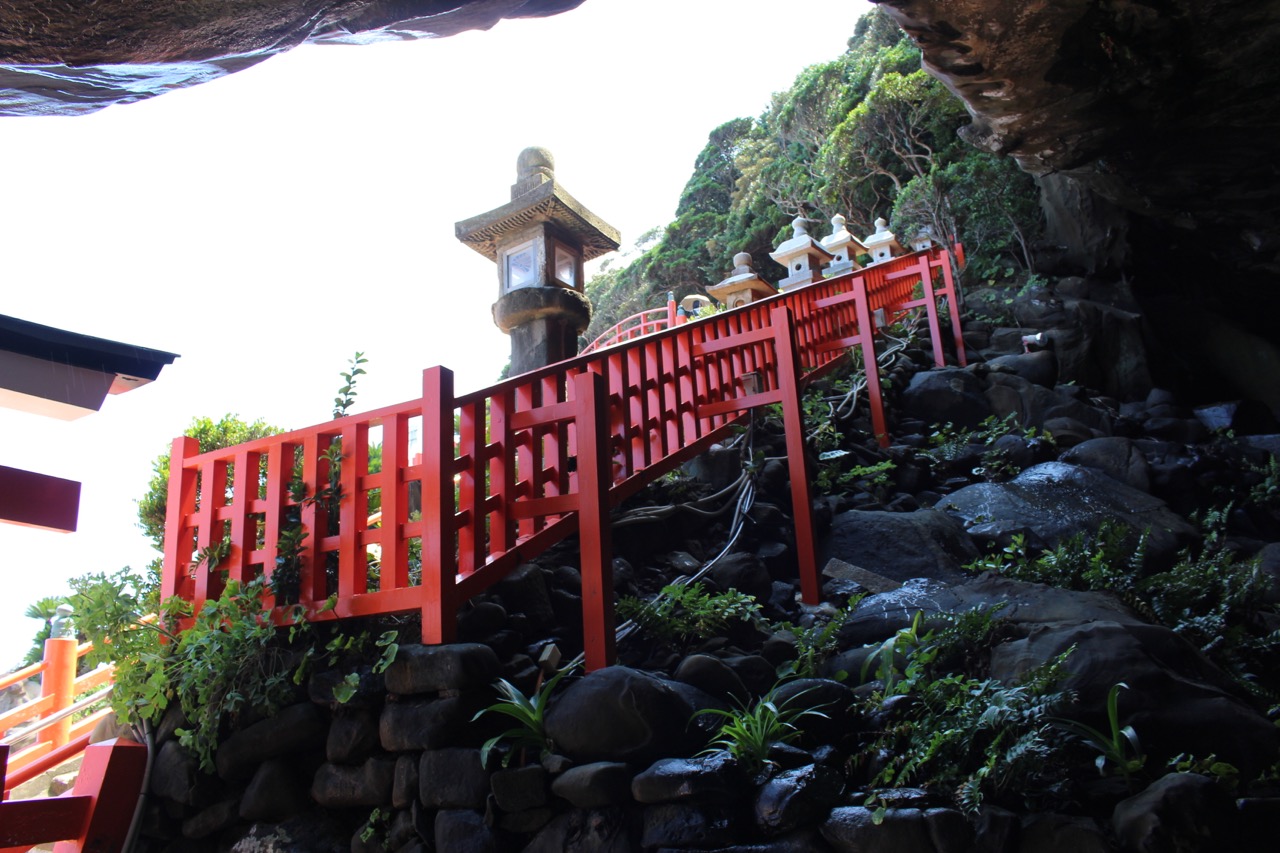 日本的神社廟宇,若需要走階梯才能到正殿的話,大多是往上爬行的,像是鵜戶神社這樣往下走的例子十分稀有。