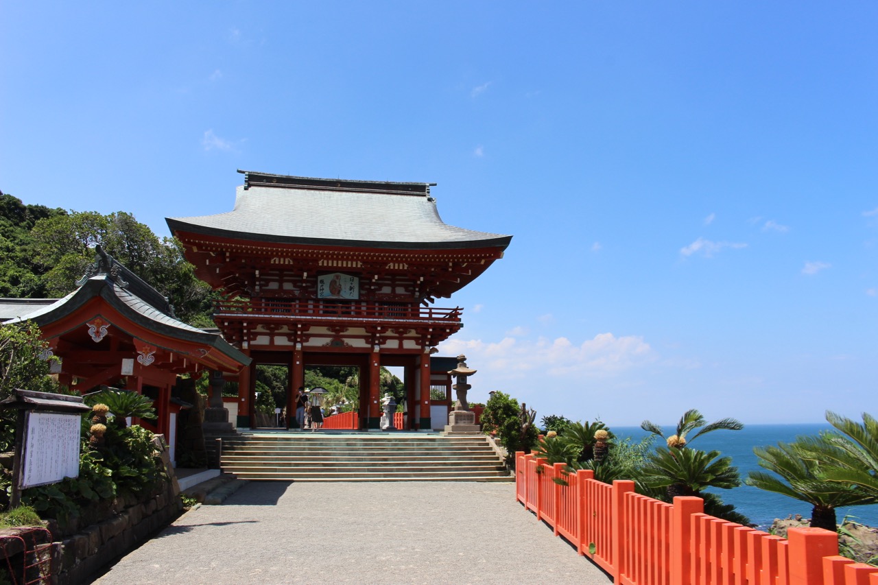 素來有日本神話孕育地的宮崎縣,在境內的日南海岸上,有兩座重要的神社。一間是青島神社;另一間則是鵜戶神宮。青島神社奉祀的是日向神話裡的山幸彥和豐玉姬夫婦,而鵜戶神宮「主祭神」的就是他們兩位生下的孩子,有著一個很長、很饒口,但聽起來似乎就非常厲害的名字——日子波瀲武鸕鷀草葺不合尊。