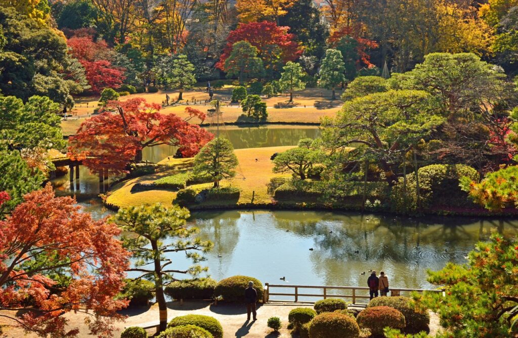 六義園是江戶時代德川幕府第五代將軍德川綱吉的親信柳澤吉保於1695年所建造的代表性庭園,包括了小橋流水、渡月橋、茶屋等景點,美麗壯觀,非常別緻,秋天賞楓季節會在夜晚點燈,呈現出來的美景,讓每年秋天到六義園觀賞夜楓的遊客川流不息。