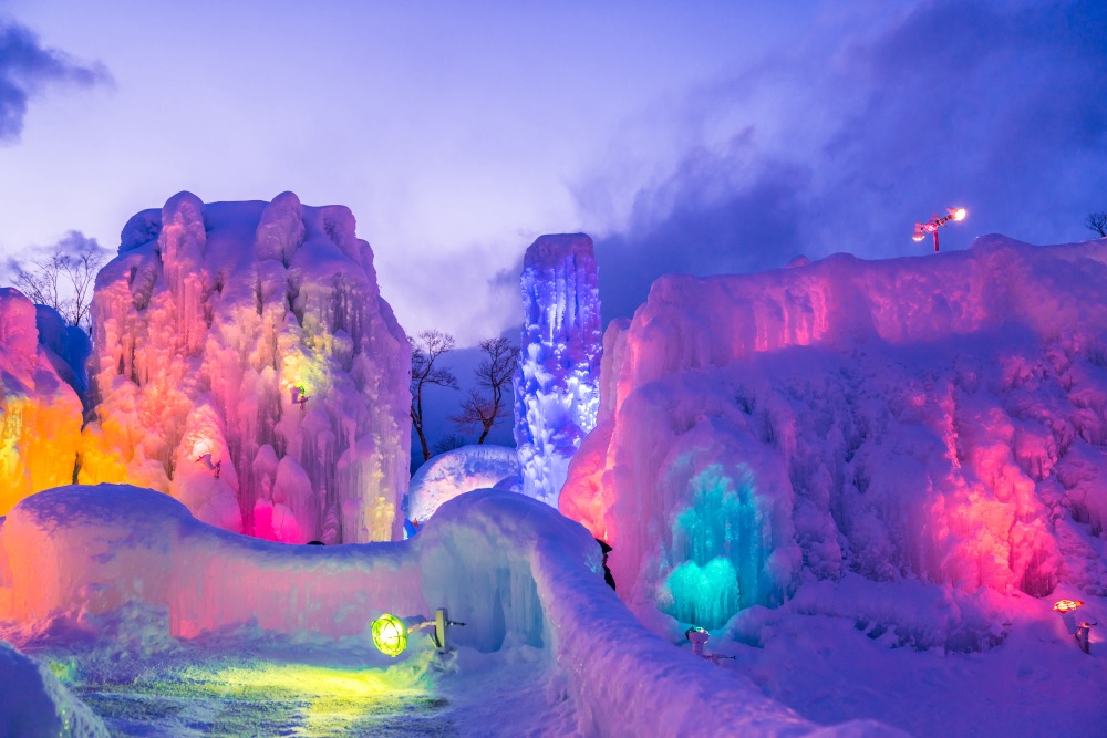 「千歲支笏湖冰濤祭(支笏湖氷濤まつり)」是北海道的冬季盛事,展現支笏湖的絕美風光和冷冽氛圍。支笏湖是日本最具透明度的湖泊之一,這個冰雪節慶利用支笏湖湖水,創造出各種奇妙的冰雕藝術品,白天呈現出湛藍的色彩,到了夜晚則由多彩的燈光照亮,呈現出夢幻的冰雪天堂。
