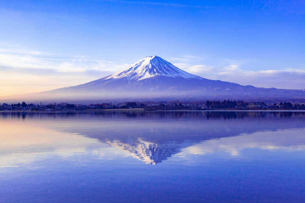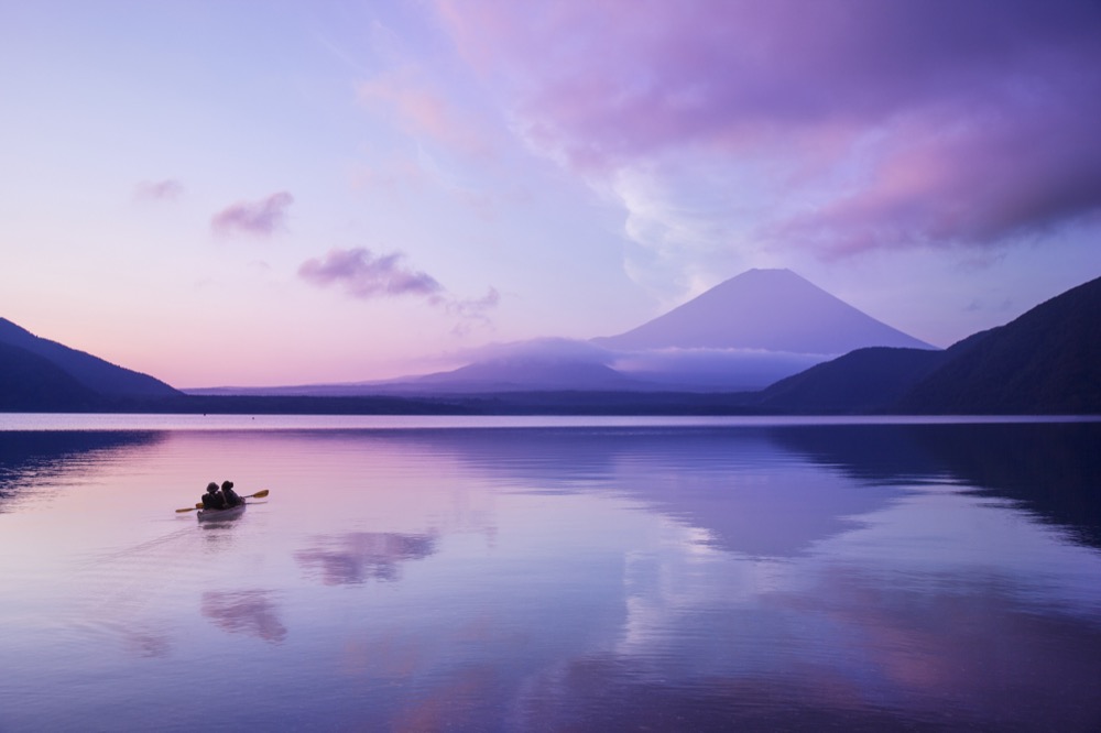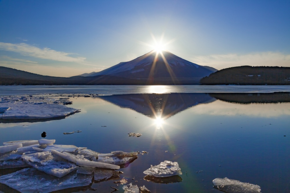 在元旦的日出之時,富士山初露的美景在湖面上反射如夢似幻,旅人甚至有機會親眼目睹太陽與富士山頂相疊的鑽石富士,為新的一年帶來好運。