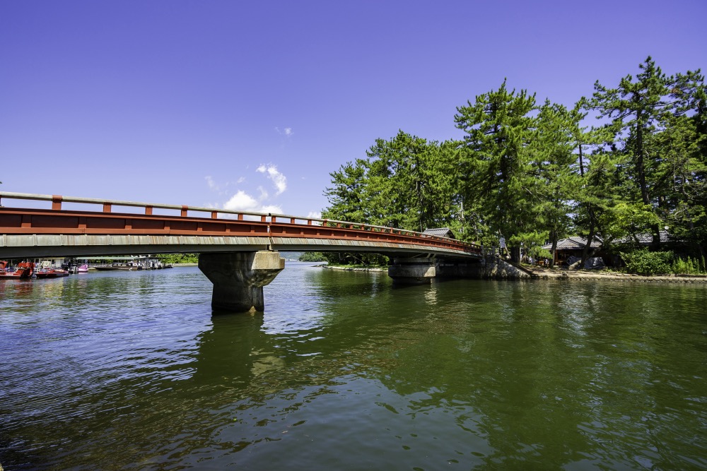「日本三景」之一的「天橋立」,位於京都府北部,其獨特的地形成為自然之美的極致體現,寬約20~170公尺、長約3.6公里的沙洲,茂密的松樹如蓊鬱絨毯般生長,經歷千百年的自然雕琢,呈現出壯麗的景象。