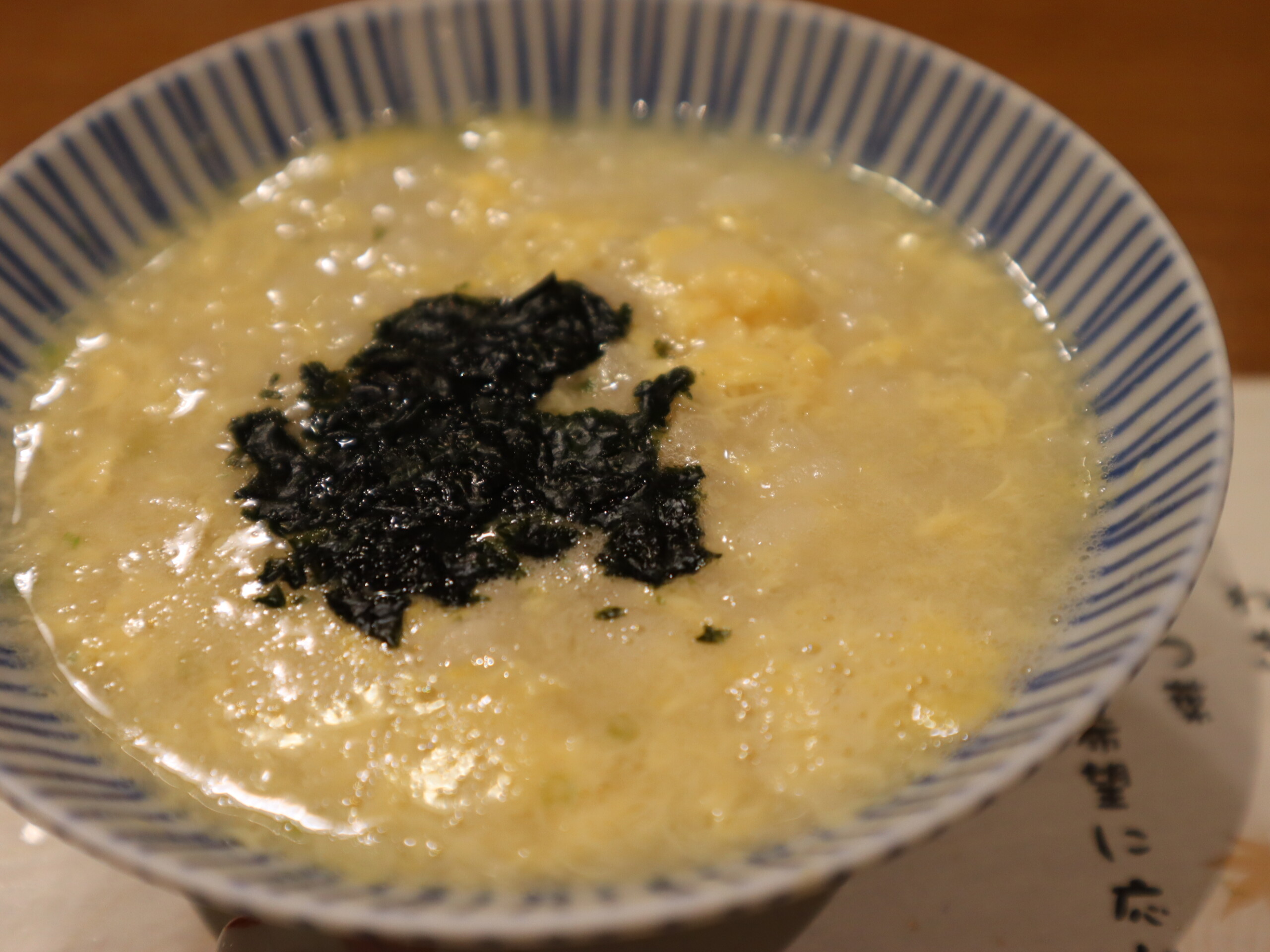 文蛤料理的收尾是日本鍋類料理常見的粥品。原本的高湯再川燙過文蛤之後變得更加香濃,煮成粥之後口感溫和濃郁,叫人回味無窮,為文蛤全餐畫下完美句點。